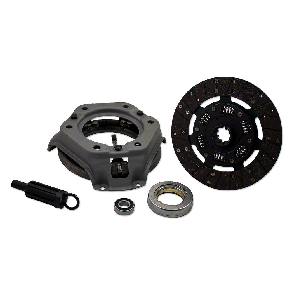 Kit includes new pressure plate, clutch disc, throw out bearing, pilot bearing, alignment tool. Does not include pilot bushing for NAA, Jubilee.