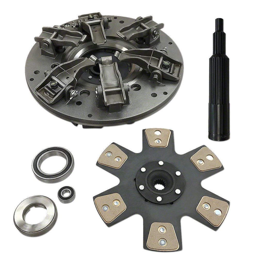 Includes woven clutch disc, PTO disc, dual stage pressure plate, clutch throw-out bearing, PTO release bearing, pilot bearing & clutch lineup tool.